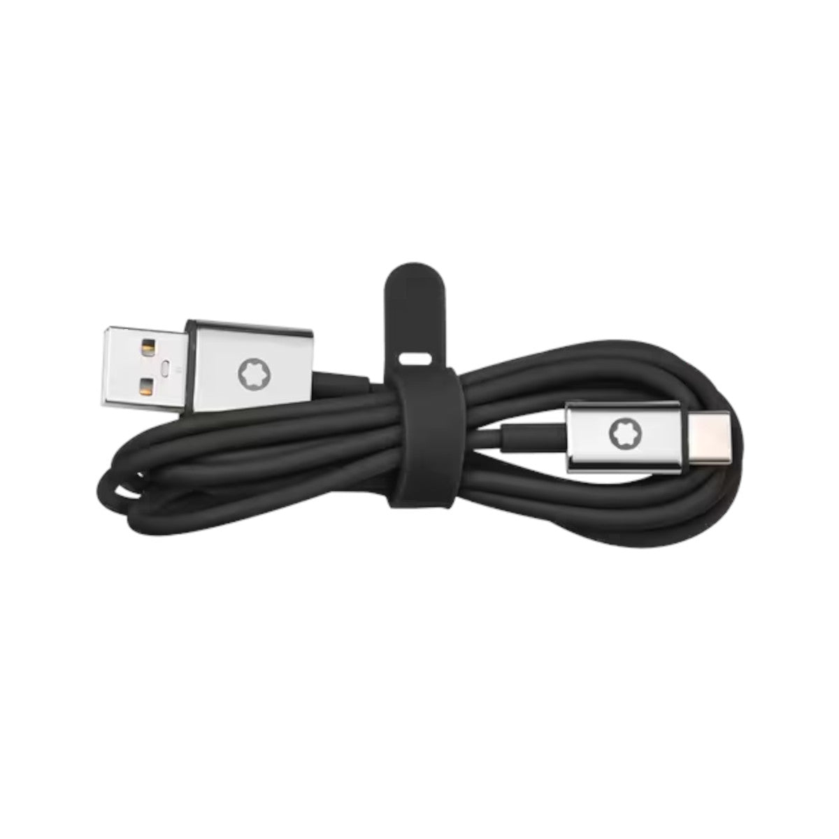 Ce coffret de voyage contient une trousse noire pour transporter votre casque Montblanc MB 01, ainsi qu’un câble de charge USB-C noir, un câble jack noir et un adaptateur de voyage noir.